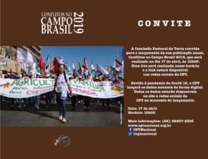No dia 17 de abril, sexta-feira, Dia Mundial de Luta Camponesa, a Comissão Pastoral da Terra (CPT) lançará sua publicação anual, Conflitos no Campo Brasil 2019. É a 34ª edição