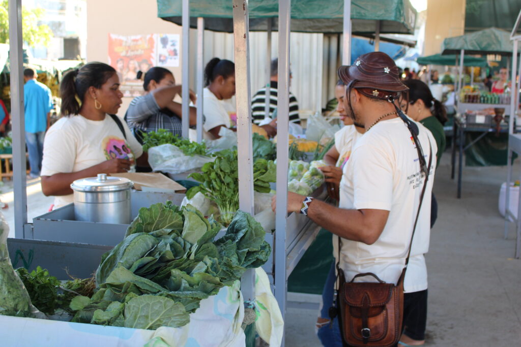 Na visita à feira, as mulheres notaram a diversidade da produção agroecológica das comunidades e o empenho das/os feirantes em conquistar seus clientes, oferecendo alimentos de qualidade e a preços justos. O café da manhã também foi servido no local: pamonha, milho verde cozido, galinha caipira, beiju, sucos e cafezinho não faltaram para acolher as visitantes. Assim, as mulheres aproveitaram esse momento de muitas conversas e descobertas sobre o processo de comercialização da produção local.